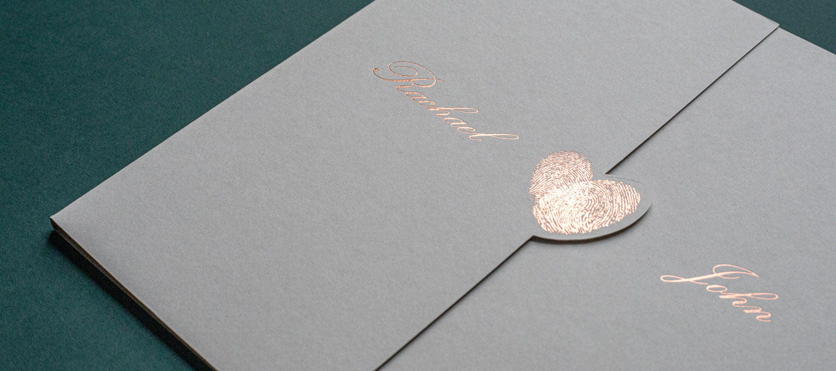 heart fingerprint gold foiled wedding stationery on card